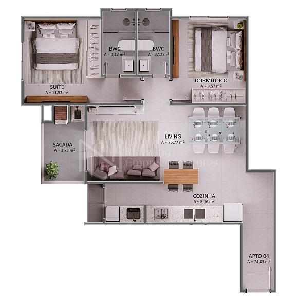 74,03 m² de área privativa