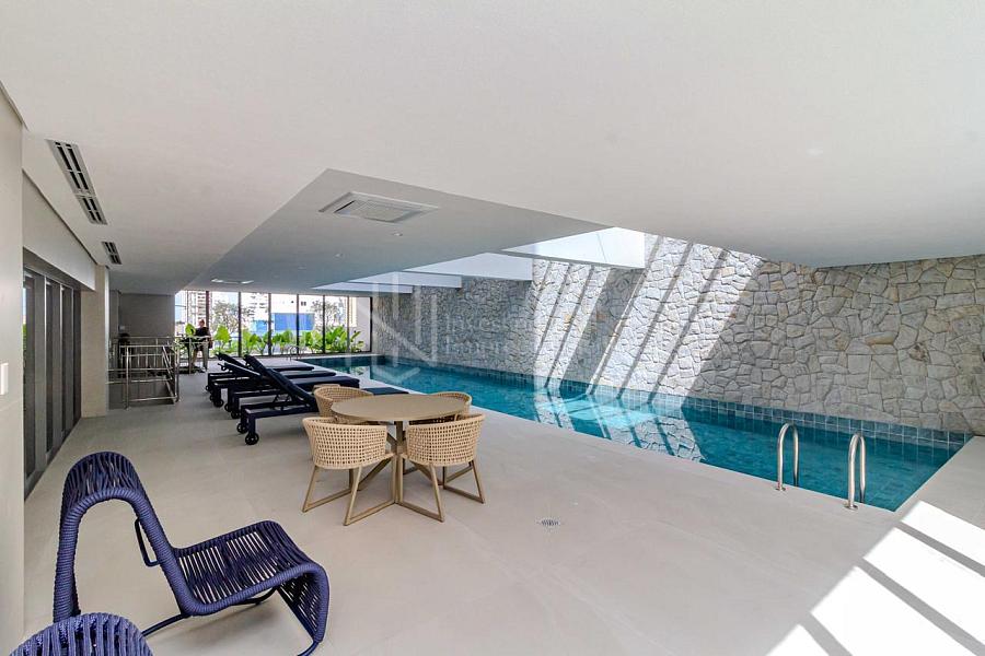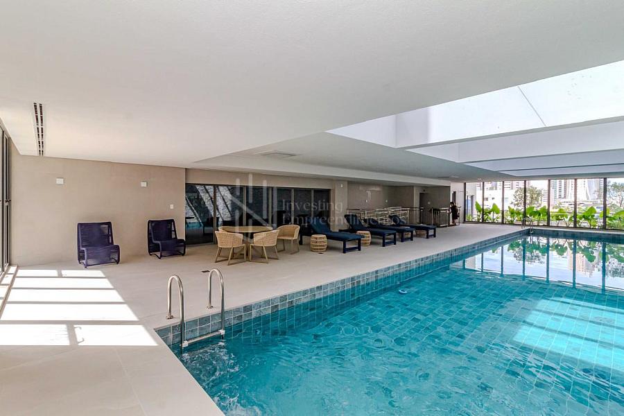 O empreendimento conta com área de lazer completa, incluindo piscinas adulto e infantil, piscina coberta aquecida, academia, salão de festas, espaço gourmet, quiosque, churrasqueira, brinquedoteca e playground.