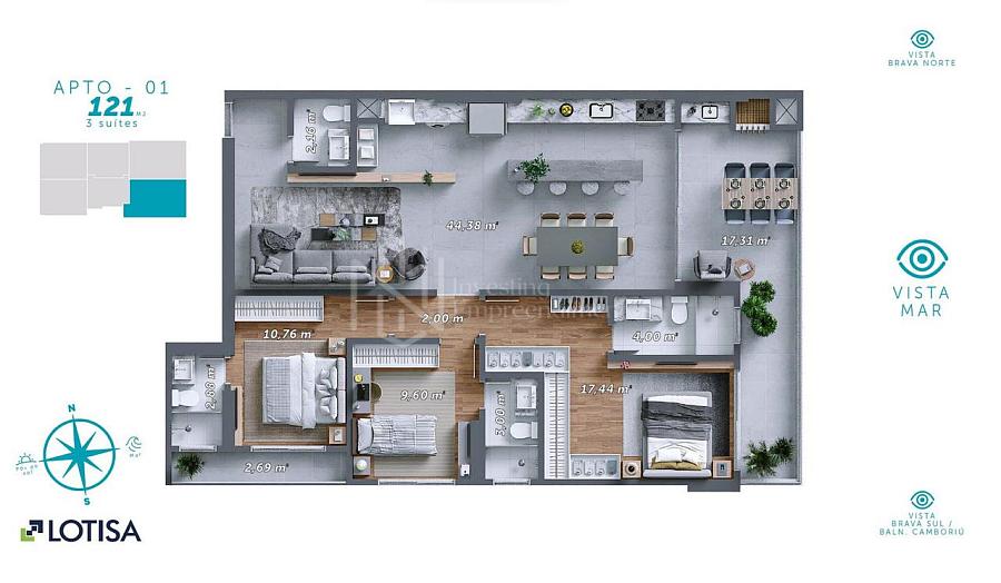 121,00 m² de área privativa